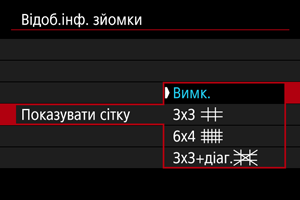На екрані та видошукачі може відображатися сітка.