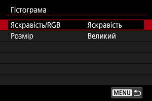 - Виберіть вміст ([Яскравість] або [RGB]) і розмір відображення ([Великий] або [Малий]).
