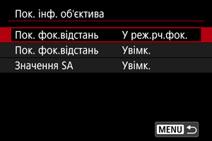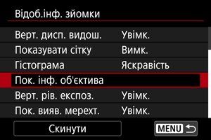 Виберіть [Пок. інф. об'єктива].