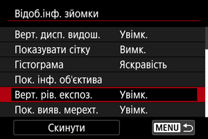 Можна показувати або приховувати індикатор рівня вертикальної експозиції, відображений у правій частині екрана.