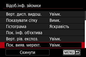 - Задайте значення [Вимк.], якщо не хочете відображати індикатор.