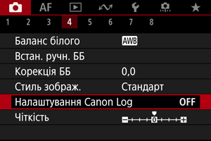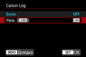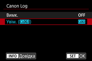 : Налаштування Canon Log] встановлено значення [Увім. (