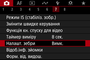 Щоб налаштувати експозицію перед відеозаписом або під час нього, можна відображати смугастий узор над областю зображення або навколо неї із заданою яскравістю.