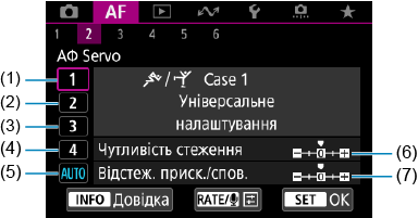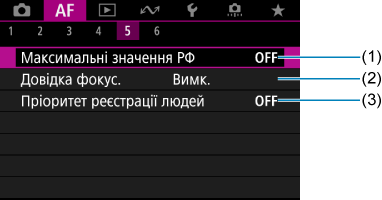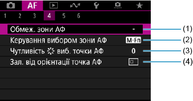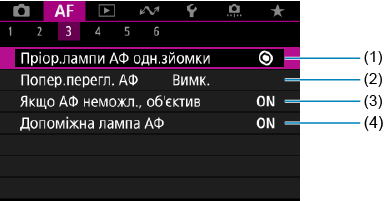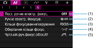 - Якщо використовується об'єктив без перемикача режимів фокусування, на вкладці [