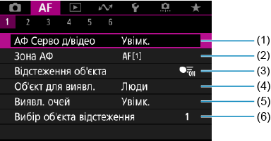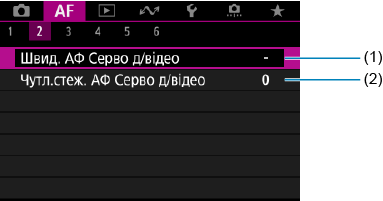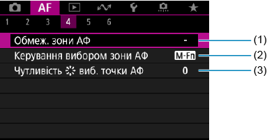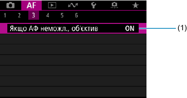 - Якщо використовується об'єктив без перемикача режимів фокусування, на вкладці [