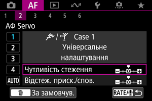 Налаштування чутливості стеження в режимі слідкуючого АФ у відповідь на рух сторонніх об'єктів повз точки АФ або вихід об'єктів зйомки із зони точок АФ.