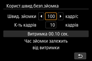 Якщо повністю натиснути кнопку затвора й утримувати її натиснутою, виконується неперервна зйомка, як описано нижче, залежно від параметра [