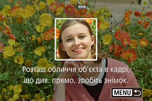 На кожному зареєстрованому обличчі, визначеному на екрані зйомки, з’являється біла рамка з піктограмою []. Зауважте, що піктограма [