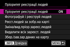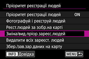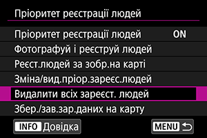 Виберіть [Пріоритет реєстрації людей], а потім — [Вимк.].