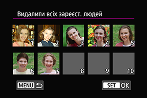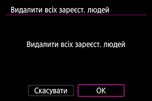 - Зареєстровані за допомогою цієї функції зображення облич і пов’язані дані зберігаються в камері. Перед тим, як утилізувати камеру або передати її у власність іншої особи, видаліть усю зареєстровану інформацію.