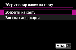 - Виберіть [Зберегти на карту], щоб зберегти дані, зареєстровані на камері, на карту пам'яті.