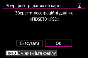 Щоб перейменувати файл зареєстрованих даних перед збереженням, натисніть кнопку