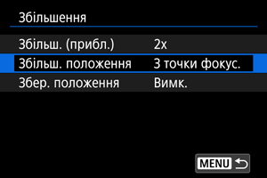 Положення, встановлене в [Збільш. положення], використовується під час відображення наступних зображень у збільшеному вигляді.