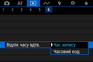 - Незалежно від значення параметра [Відлік часу зап.] часові коди завжди записуватимуться до відеофайлів (крім відео з високою частотою кадрів з установленим значенням [Відл. завжди]).