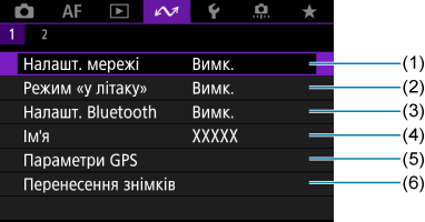 - Коли камеру підключено до комп’ютера чи іншого пристрою за допомогою інтерфейсного кабелю, налаштування деяких елементів меню неможливе.