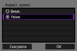 - Вибір параметра [Вибрати зі списку], якщо на камеру зареєстровано параметри зв’язку, дасть змогу застосувати зареєстровані параметри.