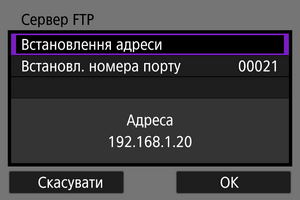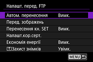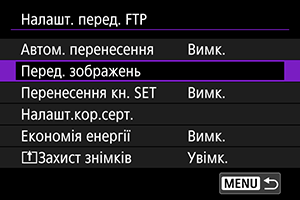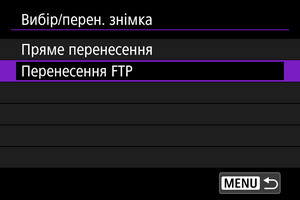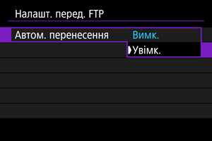 За допомогою функції передавання по FTP можна автоматично передавати кожне зображення на FTP-сервер у процесі зйомки або передати комплект знімків.