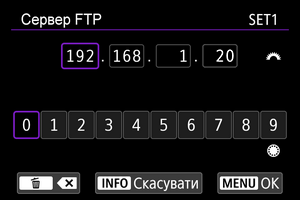 - Якщо для DNS-адреси вказано значення параметра [Вимк.], буде відображено екран введення чисел.