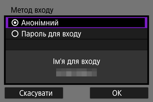 - Для безпечного передавання по FTP через з’єднання SSH виберіть пункт [SFTP]. Настройка параметрів входу показана в кроці 5.