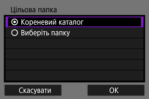 - Виберіть пункт [Кореневий каталог], щоб зберігати зображення в кореневу папку, як зазначено в параметрах FTP-сервера ().