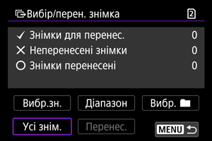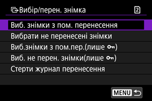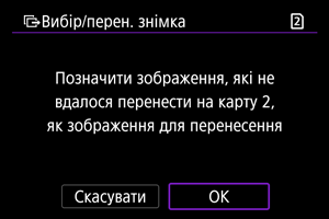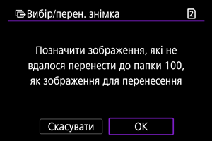 - У разі вибору пункту [Виб. знімки з пом. перенесення] буде вибрано всі зображення у вибраній папці, які не вдалося перенести.