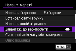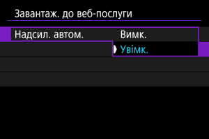 - Якщо встановлено параметр [Увімк.], зображення надсилатимуться автоматично, коли камеру буде ввімкнуто.