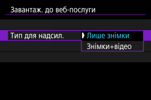 - Установіть значення [Лише знімки] або [Знімки+відео].