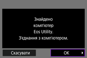 - Це повідомлення відображається після того, як камера знайде комп’ютер, який було вибрано за допомогою кнопки [Connect/Підключити] на кроці 4.
