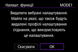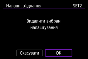 - Якщо вибрати пункт [Скинути вибране], параметри функції будуть стерті зареєстрованими параметрами підключення. На екрані підтвердження натисніть [OK].