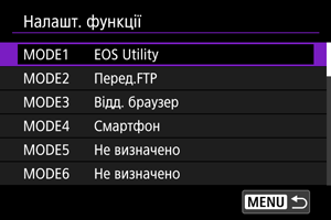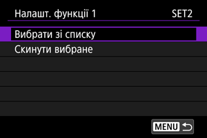 Якщо вибрати пункт [Вибрати зі списку], буде відображено список параметрів функції, що збережені на камері. Виберіть параметри функції, яку потрібно використовувати.