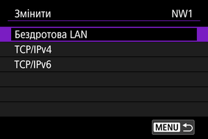 - Якщо вибрати пункт [Бездротова LAN], це дасть змогу змінити, наприклад, цільовий ідентифікатор SSID.