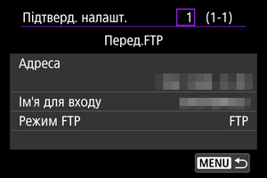- Для отримання докладнішої інформації див. розділ Передавання зображень на сервери FTP.