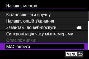 - Відображаються MAC-адреси для параметрів [Wi-Fi] та [Дротова].