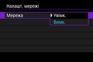 - Якщо камера вже підключена до іншого пристрою, відображається повідомлення [Виберіть для параметра [Налашт. з’єднання] значення [Роз’єднати]]. Виберіть [OK], щоб завершити підключення.