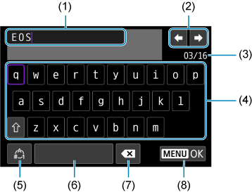 - (2) Кнопки керування курсором для переміщення курсора в полі введення