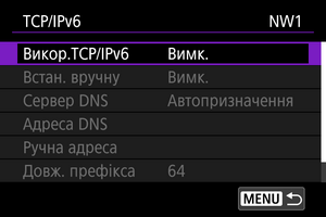- Для використання IPv6 виберіть [Увімк.] або [Вимк.].