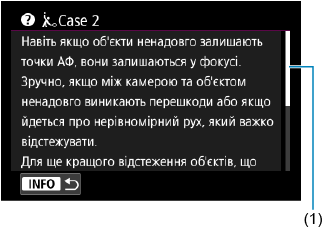 . Щоб вимкнути екран довідки, ще раз натисніть цю кнопку. Щоб прокрутити екран, коли смуга прокручування (1) розташована праворуч, поверніть диск