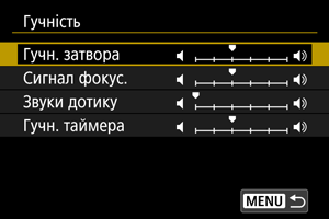 : Режим затвору], якщо в налаштуваннях [Гучн. затвора] вибрано [Завж.відтв.після спуску].