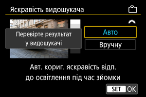 Виберіть [: Яскравість видошукача] ().