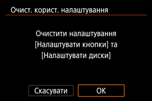 - Параметри [Налаштувати кнопки] і [Налаштувати диски] скидаються до значень за замовчуванням.
