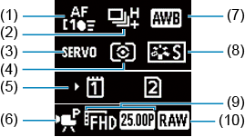 - (12) Кількість кадрів, які залишилися для брекетингу фокусування, мультиекспозиції або таймера інтервалу