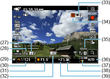 - (39) Індикатор рівня експозиції (рівні вимірювання)
