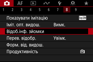 Відомості й інформаційні екрани, які відображаються на дисплеї або у видошукачі під час зйомки, можна налаштувати.