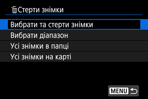 Можна видалити всі зображення в папці або на карті пам’яті за один раз.