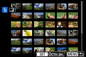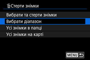 Під час перегляду зображень у режимі індексного відображення можна вибрати перше й останнє зображення діапазону, щоб видалити відразу цілу групу зображень.
