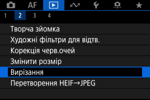 Зображення, зняті у форматі JPEG або HEIF, можна обрізати й зберегти окремо. Зображення у форматі RAW і зображення, отримані за допомогою функції захоплення кадрів із відеофайлів у форматі 4K, обрізати не можна.