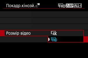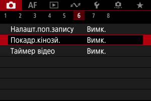 - Щоб скасувати покадрове записування відео, установіть для параметра [Покадр.] значення [Вимк.].