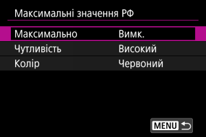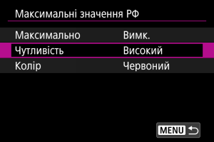 - Виділення для ручного фокусування може бути важко побачити за високої чутливості ISO, особливо коли встановлено розширення діапазону ISO. За необхідності зменште чутливість ISO або встановіть для параметра [Максимально] значення [Вимк.].