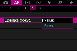 Якщо встановити для параметра [: Довідка фокус.] значення [Увімк.], відображатимуться візуальні підказки, що позначатимуть напрямок і потрібний ступінь корекції.