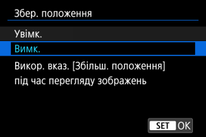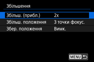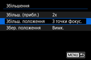 Положення, встановлене в [Збільш. положення], використовується під час відображення наступних зображень у збільшеному вигляді.